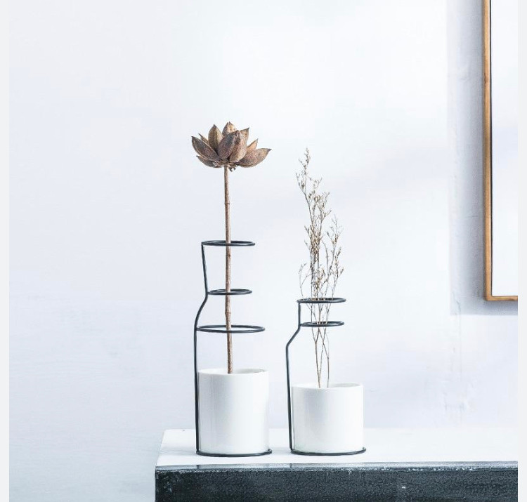 گلدان فلزی دوتکه رنگ سفید و مشکی