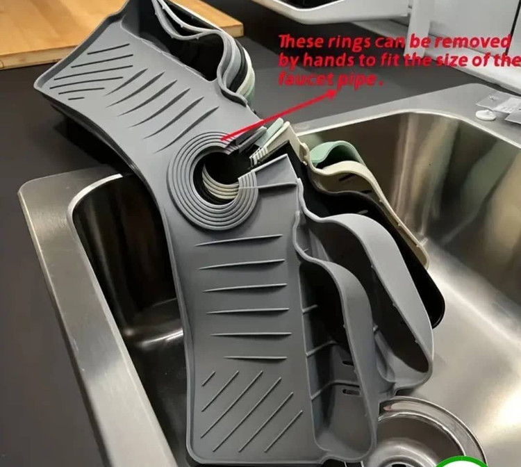 آبگیر دورشیر، یک وسیله یا پوشش محافظ است که به جلوگیری از نفوذ آب به اطراف شیر و جمع شدن آن کمک میکند. این آبگیر با هدایت آب به داخل سینک، از تجمع آب در اطراف شیر و نفوذ به زیر سینک جلوگیری کرده و عمر تجهیزات آشپزخانه را افزایش میدهد. این محصول از جنس سیلیکون با ابعاد حدود عرض 35 طراحی شده است./این محصول از سیلیکون نرم و باکیفیت ساخته شده است که به راحتی خم میشود و به شکل شیر سینک شما قالب میگیرد./طراحی خورجیندار: وجود خورجین در این آبگیر، فضایی مناسب برای قرار دادن اسفنج، برس ظرفشویی یا حتی بطری مایع ظرفشویی فراهم میکند.