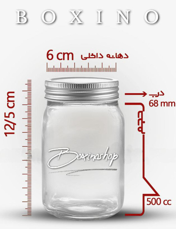 جار شیشه ای چهارگوش کتیبه درب کانتینری سایز 3، 500 سیسی حجم دارد. این جار شیشه ای 700 گرم عسل را در خود جای میدهد. ارتفاع این محصول 13/5 سانتیمتر و اندازهٔ قطر دهانهٔ آن 6 سانتیمتر است.