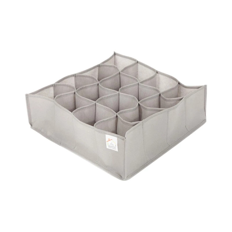 نظم دهنده های پارچه ای وسیله های پر کاربردی هستن که به نظم دهی کمد شما میتونن کمک کنن. از نظم دهنده کشو ۱۶ خانه می توان داخل کشوها برای نظم دهی به لباس ها استفاده کرد به این صورت که لباس ها را رول کنید و داخل هرخانه قرار دهید. دارای 16 خانه از جنس پارچه می باشد و به شکل مربع طراحی شده است که دارای 16 خانه برای قرار دادن لباس، جوراب، لباس زیر و … می باشد. این ارگانایزر از 4 ردیف که در هر ردیف 4 خانه قرار دارد ساخته شده است که می توان درون هر خانه وسایلتان را قرار دهید که نظم و ترتیب خاصی به کشو و کمد شما می دهد.